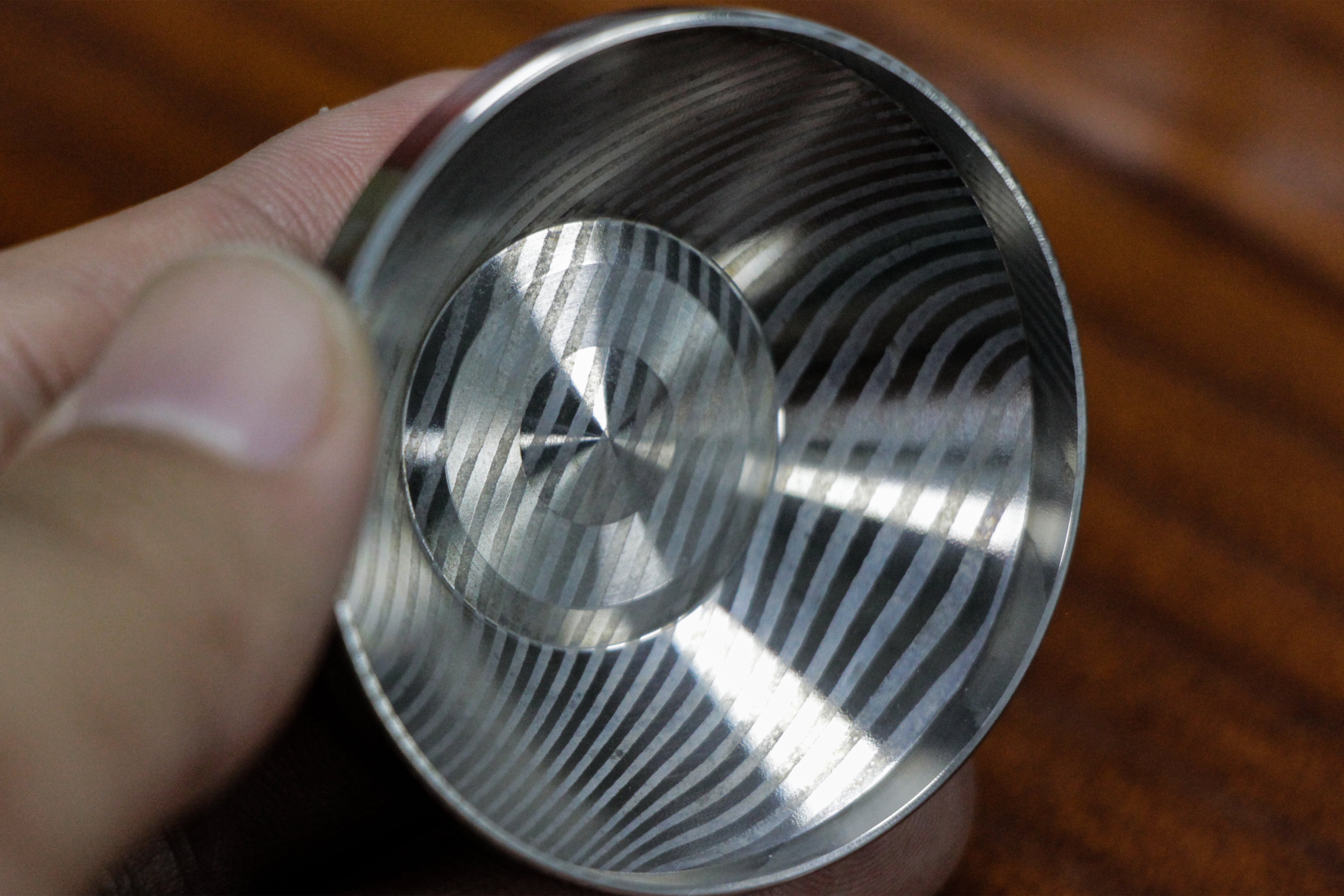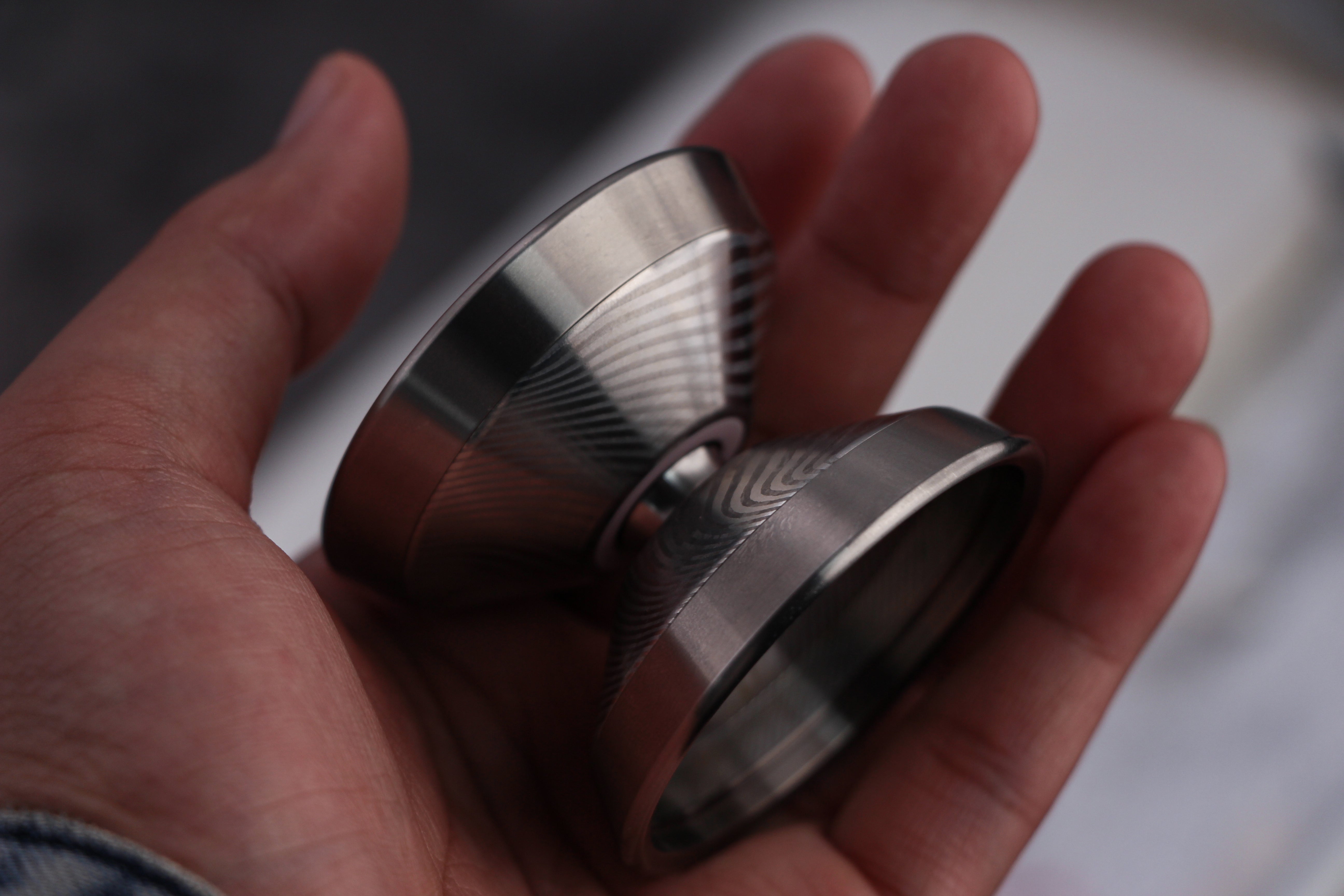 Damascus Steel is a very dense material, if we want to make the yoyo weigh normally, we have to make the wall very thin, however this material is meant mainly for knives, so its hardness is incredibly high. Even with the immense manufacturing difficulty, we decided to make the wall lower than 0.6mm, similar to our TISS hummingbird. This is a new manufacturing experience for FPM, our manufacturing team.