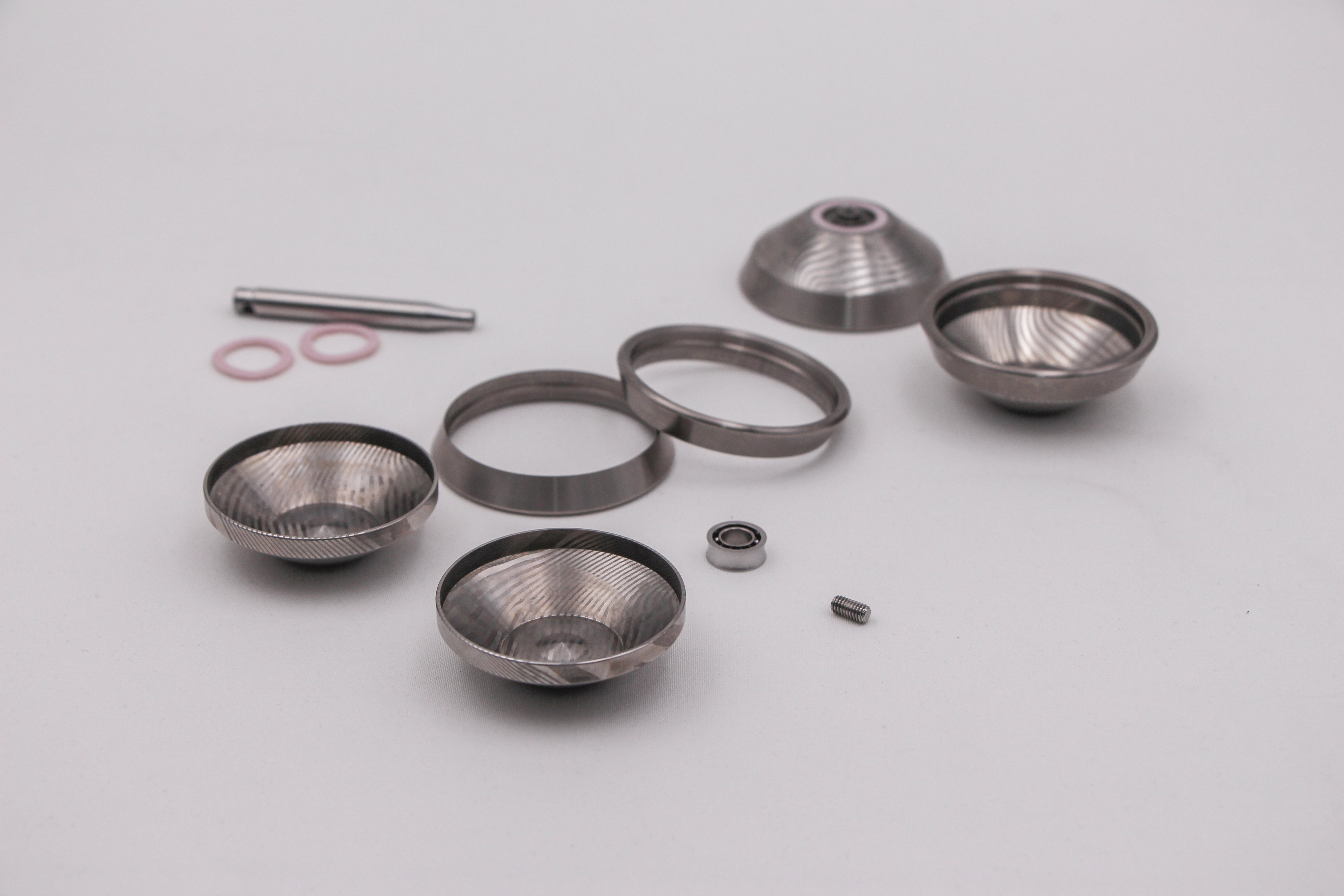 Now another question arises, which material do we pair with the Damascus Steel body? We first went to the tried and true Stainless Steel, but we realize both materials have extremely high density and hardness. Pairing them both would not work well. We then decided to use titanium rims, since titanium has almost half the density as Damascus Steel. We can make the yoyo full size while still having a good weight on the yoyo.