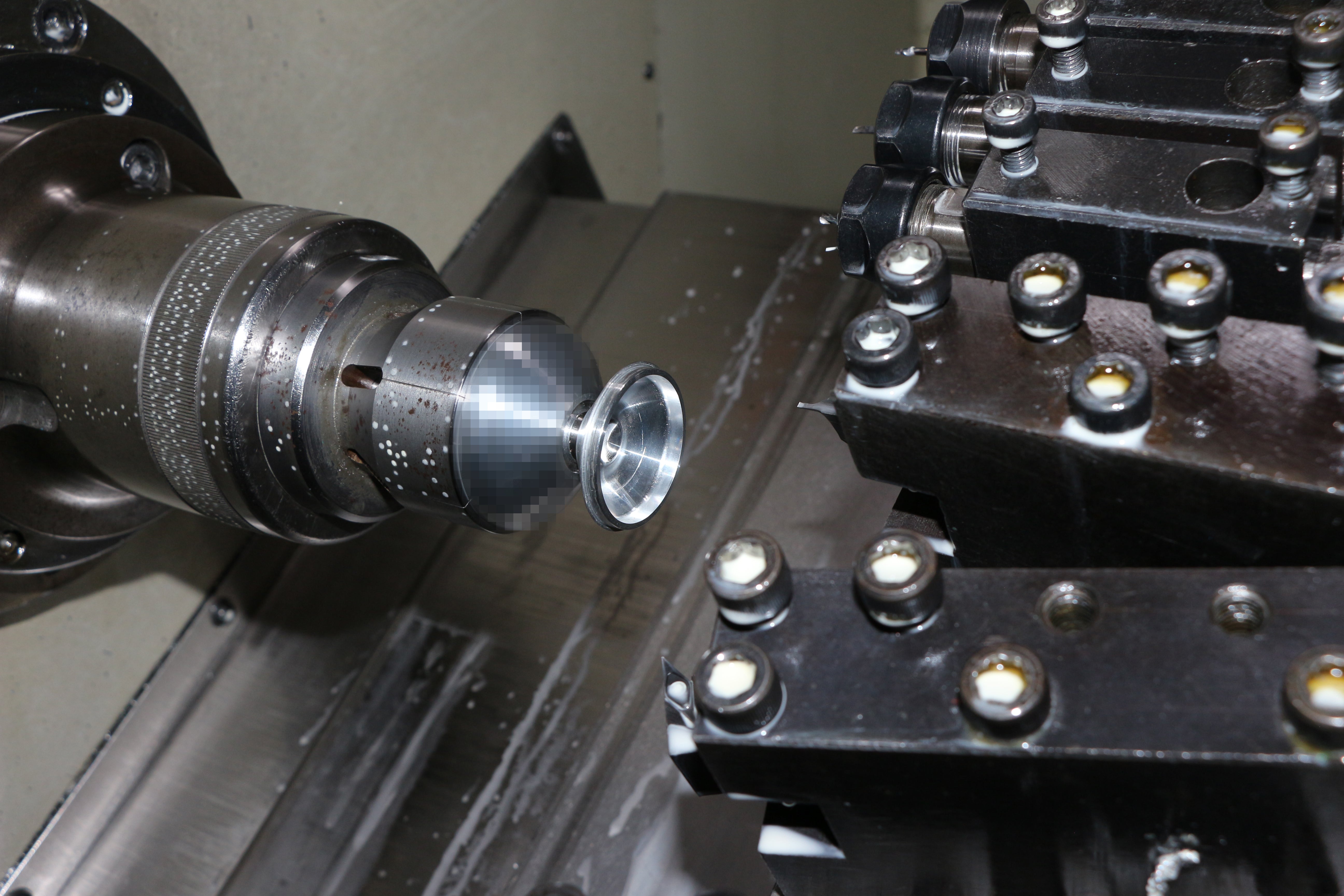 Why is the left side of the yoyo in the picture on the lathe blurred like that? Is it held with some proprietary mechanism, which you can’t show?