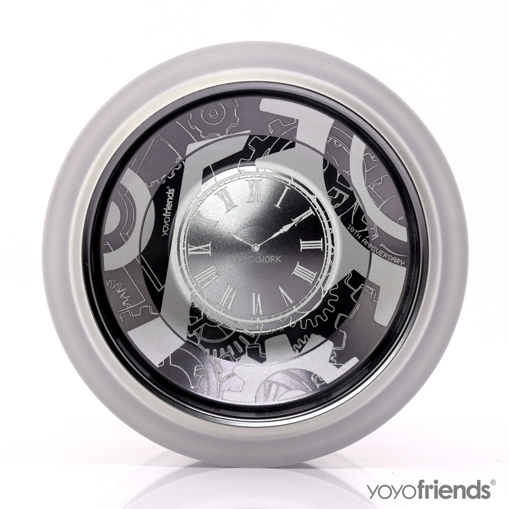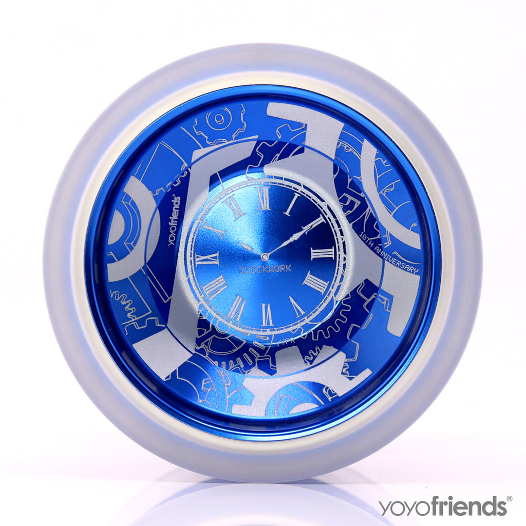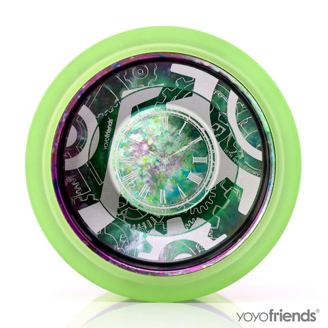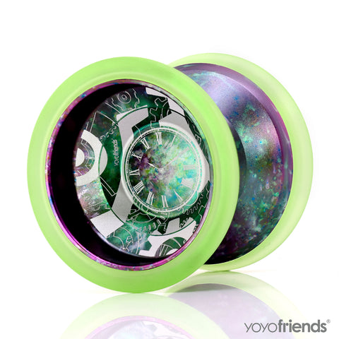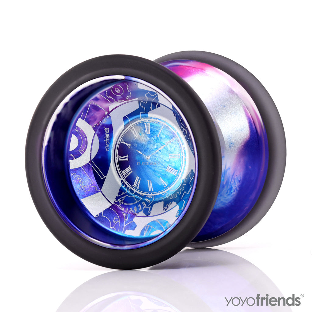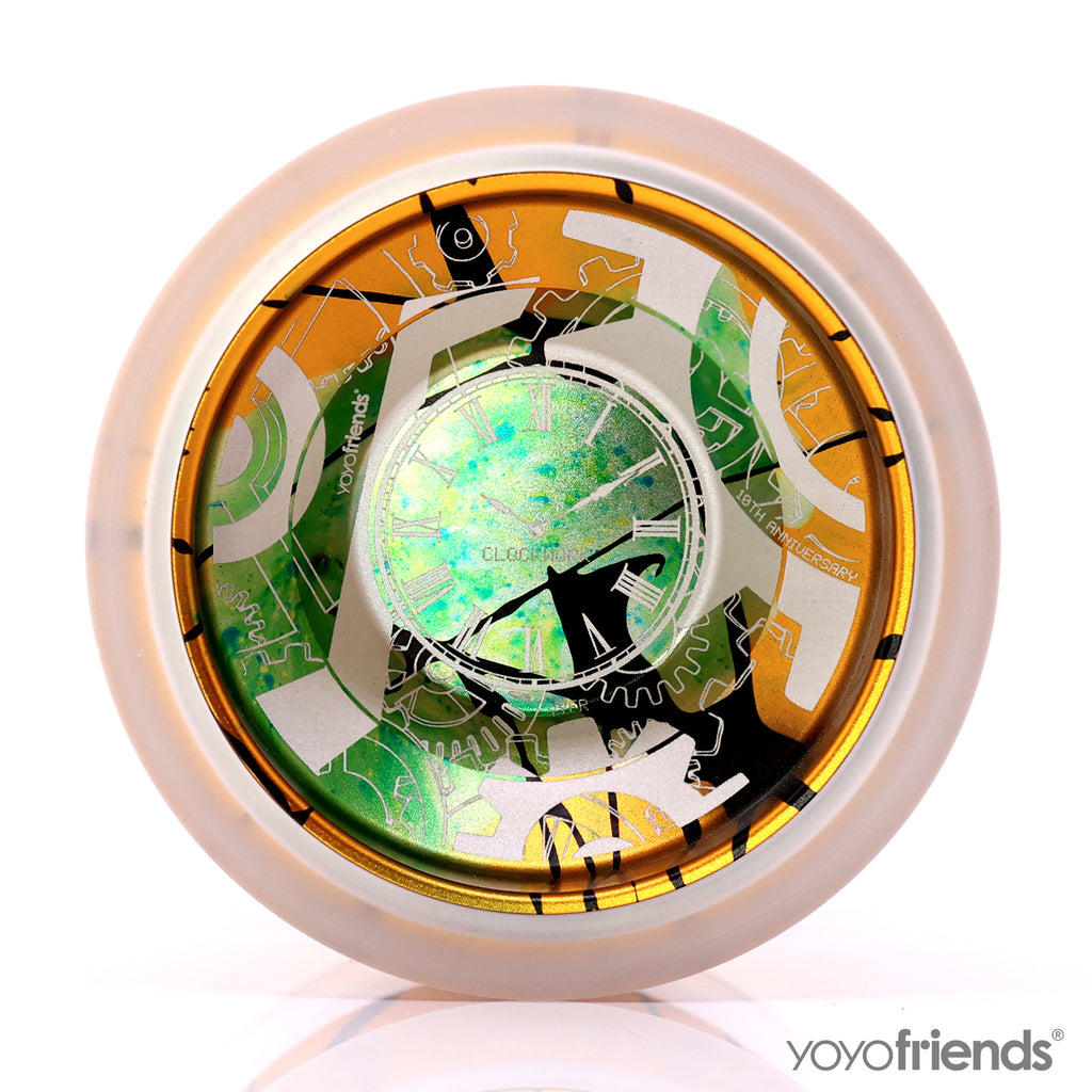Introducing Clockwork, yoyofriends 10th anniversary yoyo. Clockwork is a tri-material yoyo featuring giant PC outer rings. The PC rings encases a traditional bimetal, giving a striking aesthetics. This construction allows the yoyo to feel fun, agile, and unique even with high overall weight. The name is inspired by one of Ben 10's most powerful alien that can control time. Perfect match for yoyofriends' 10th anniversary.
