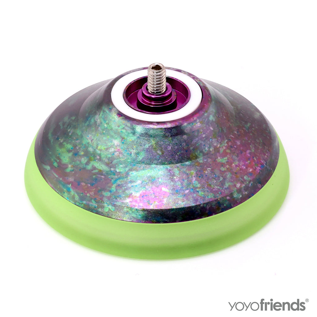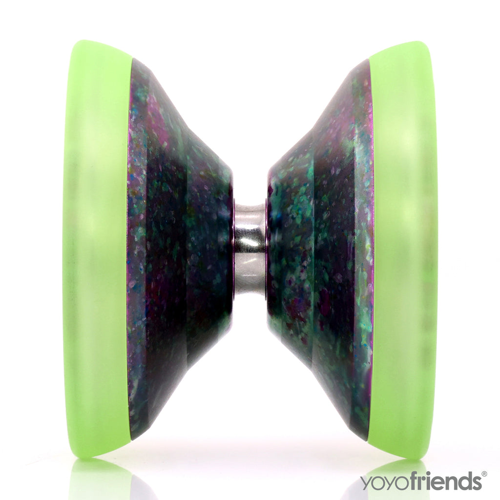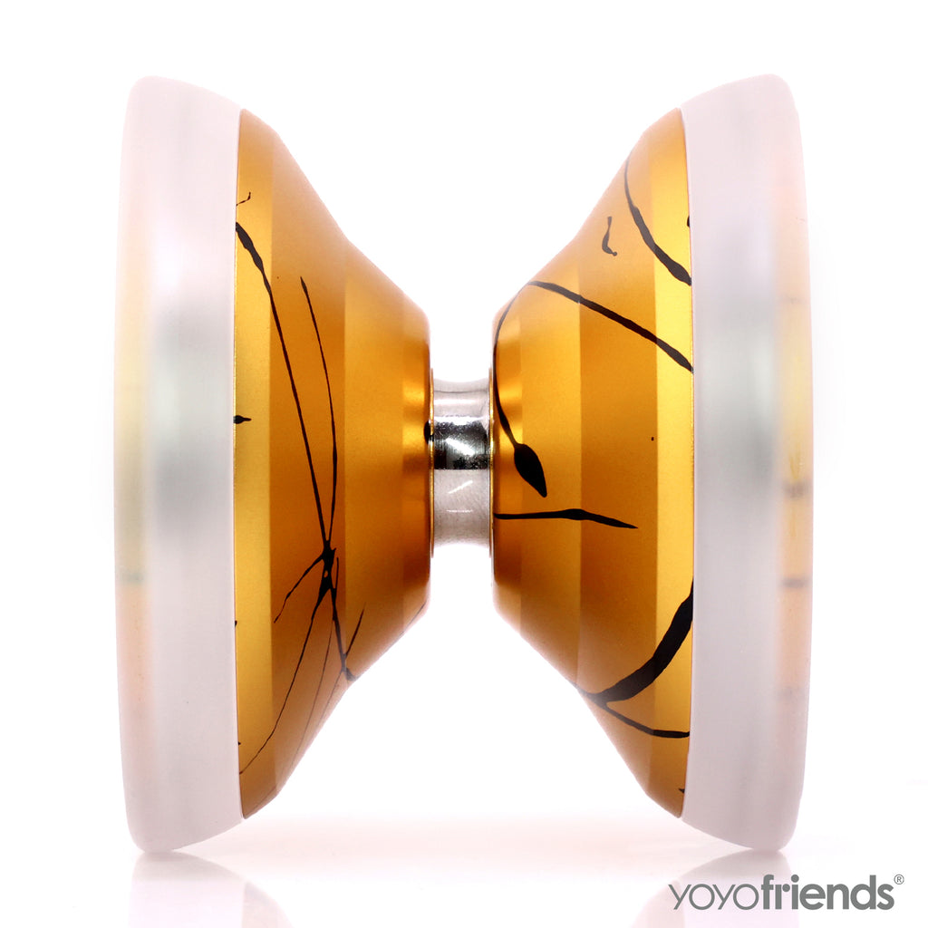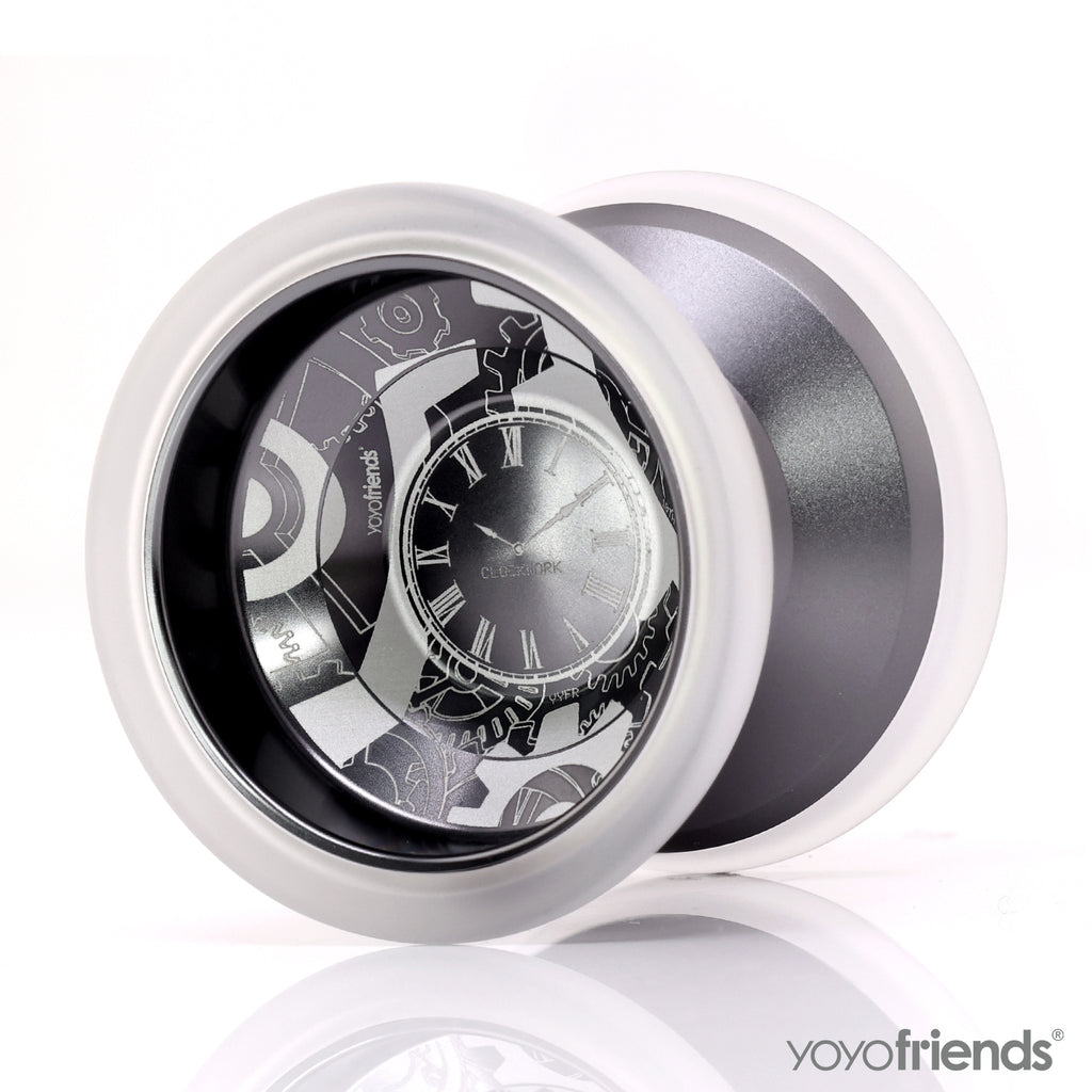 Introducing Clockwork, yoyofriends 10th anniversary yoyo. Clockwork is a tri-material yoyo featuring giant PC outer rings. The PC rings encases a traditional bimetal, giving a striking aesthetics. This construction allows the yoyo to feel fun, agile, and unique even with high overall weight. The name is inspired by one of Ben 10's most powerful alien that can control time. Perfect match for yoyofriends' 10th anniversary.